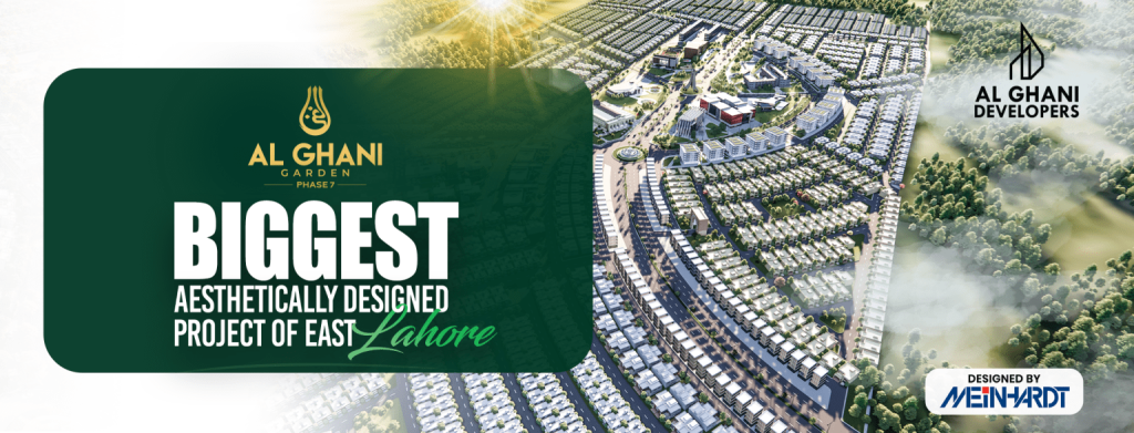 Al Ghani Garden Phase 7, a premium housing project by Al Ghani Developers, is officially approved by the TMA (Approval No. LGU50/64). Strategically located on Bhaini Road with easy access to Ring Road, GT Road, Orange Line Train, Metro Bus, and Lahore Airport, it offers convenient plots on flexible installment plans—making it a top investment choice in Lahore.